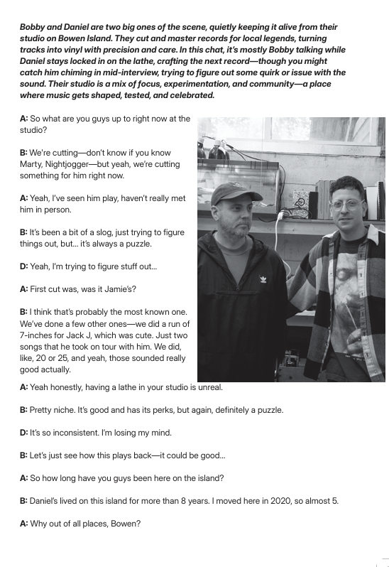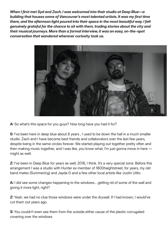 Collection of photos from OFF TEMPO — interviews and portraits from Vancouver’s underground sound.